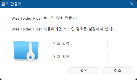 마스터 비밀번호 설정 화면 - 프로그램 접근 및 숨겨진 파일 보호를 위한 비밀번호 생성 단계